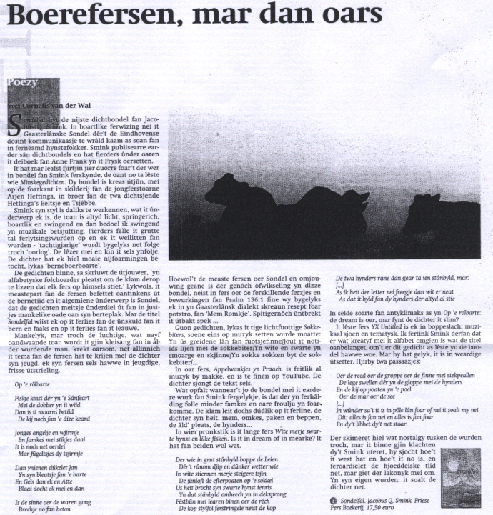 Besprek Sondelfal, Jacobus Q Smink. Friesch Dagblad.